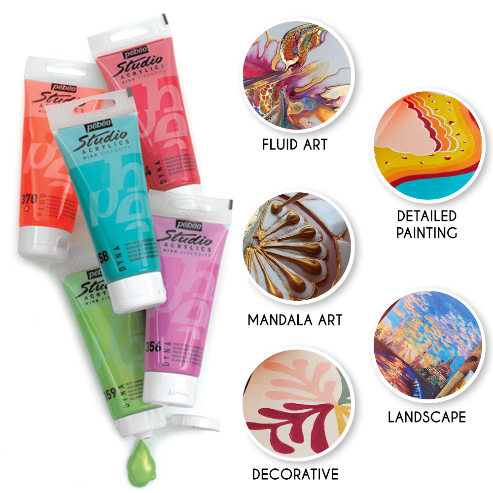 Pebeo Studio Acrylics High Viscosity Paints are versatile acrylic paints ideal for professional artists, mixed media artists, hobby artists, students of art & high-volume users. These acrylics are developed with the same precision as extra-fine acrylics and offer good performance at a great price.