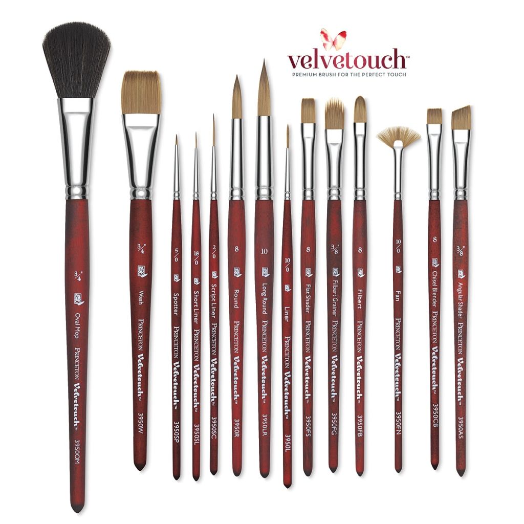 rinceton Velvetouch Brushes contain a blend of NextGen synthetic filaments, which is unique to each individual shape to ensure maximum performance. Comfort is ensured with Princetons smooth, signature Velvetouch handle.